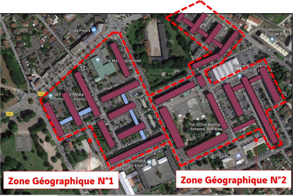 – La première tranche concernera la réhabilitation et les démolitions partielles des quartiers du Parc et Armstrong : zone géographique N°1
