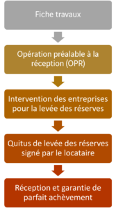 À l’issue des travaux dans votre logement, l’entreprise GTM Bâtiment vous contactera pour convenir d’un rendez-vous afin de réaliser un contrôle en présence de l’architecte et de l’équipe travaux GTM Bâtiment, appelée opération préalable à la réception (OPR).